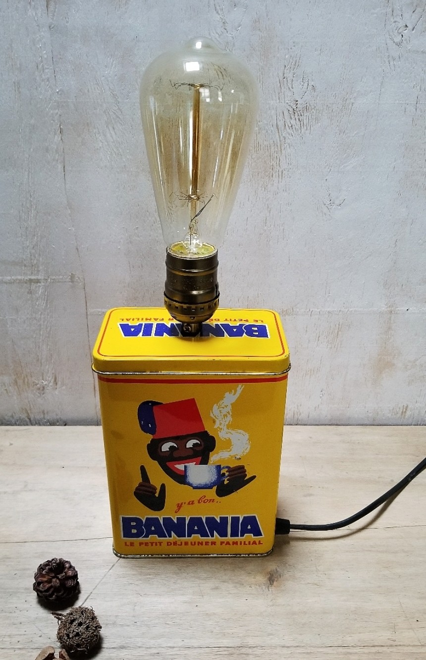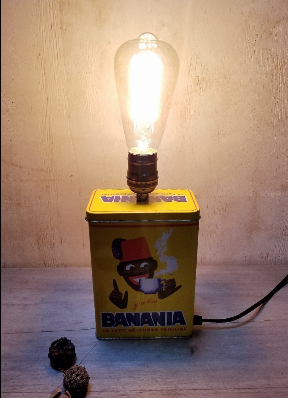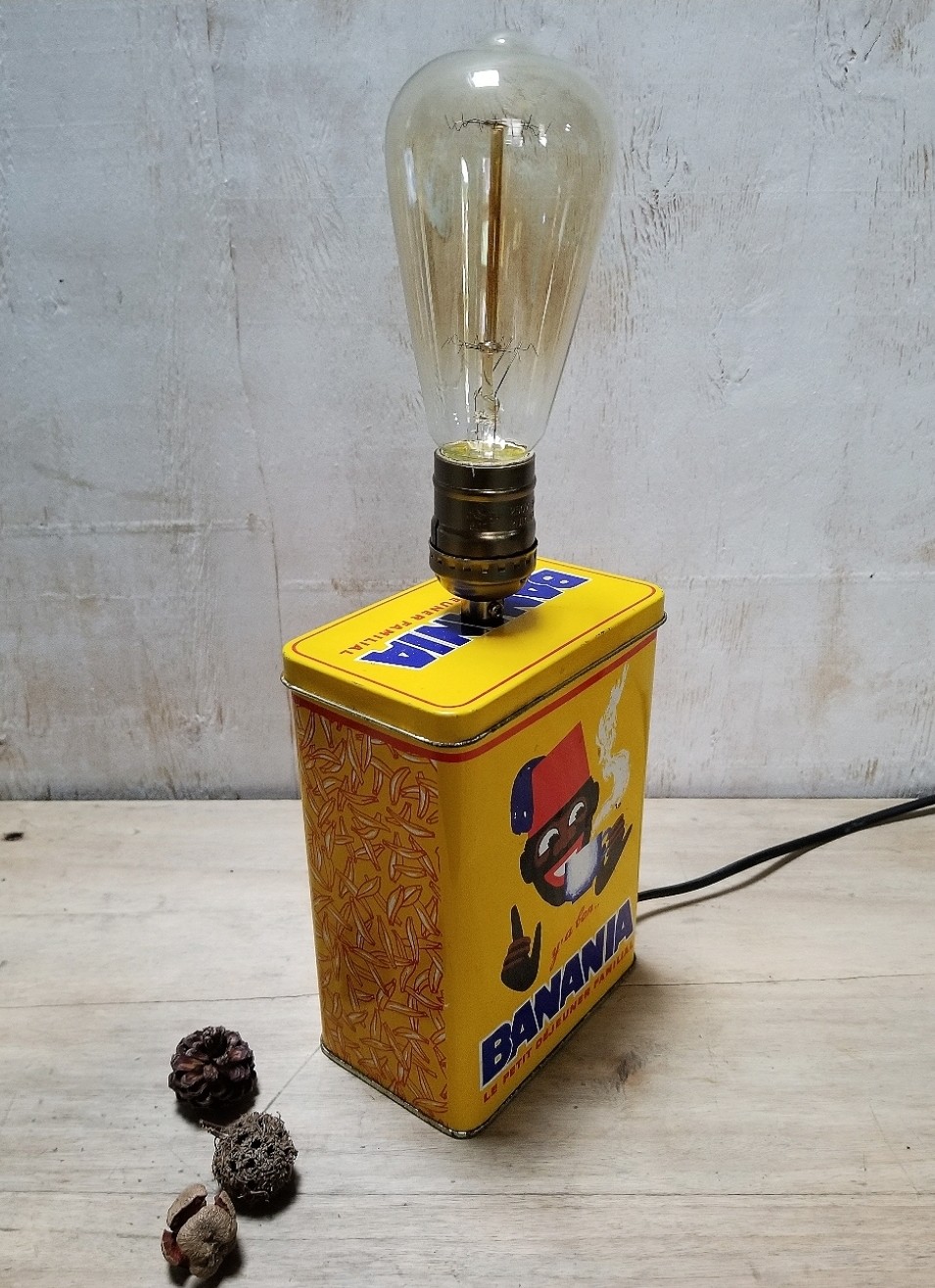 Lampe réalisée à partir d'un coup de foudre pour ces boites iconiques qui nous rappelle nos grands parents.