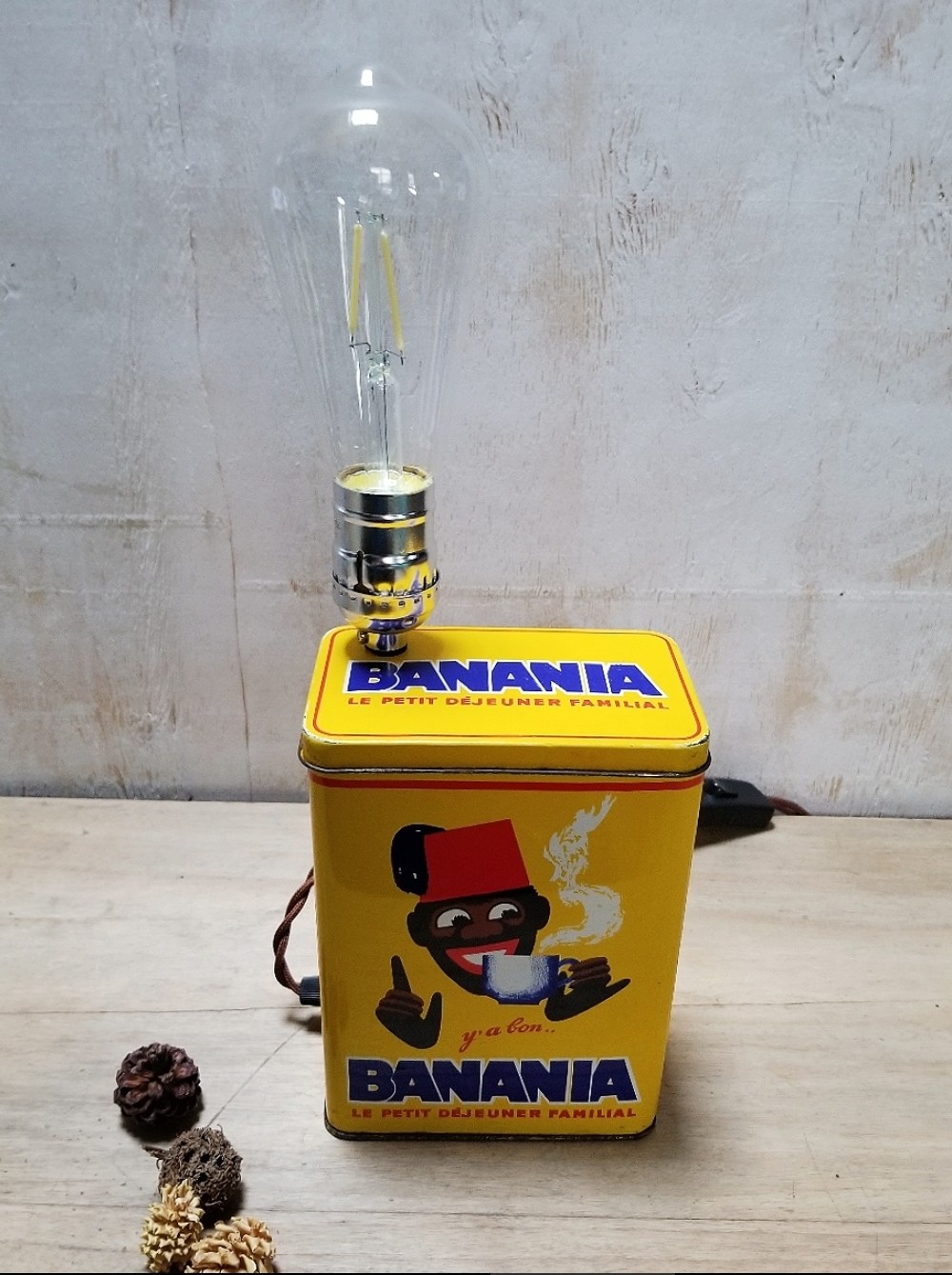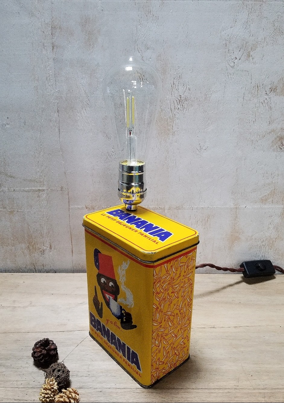 Lampe réalisée à partir d'un coup de foudre pour ces boites iconiques qui nous rappelle nos grands parents.