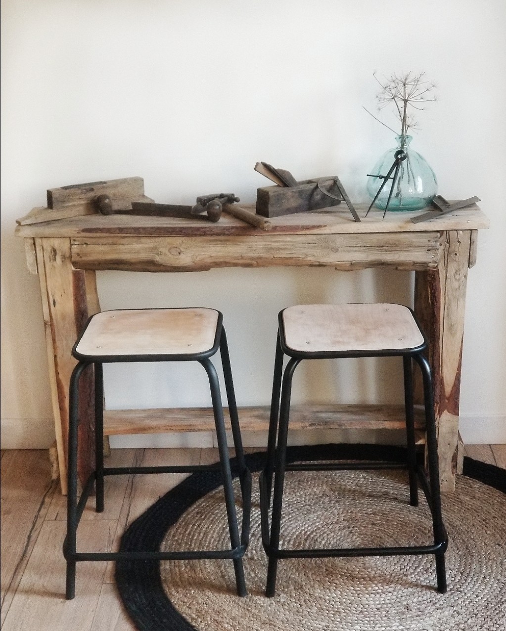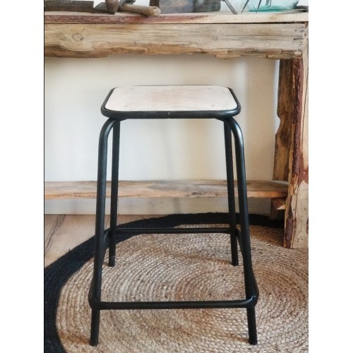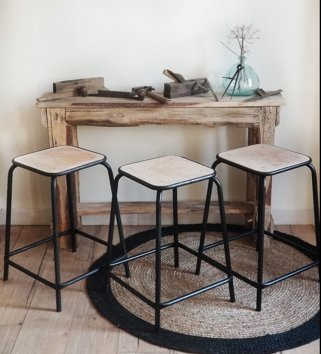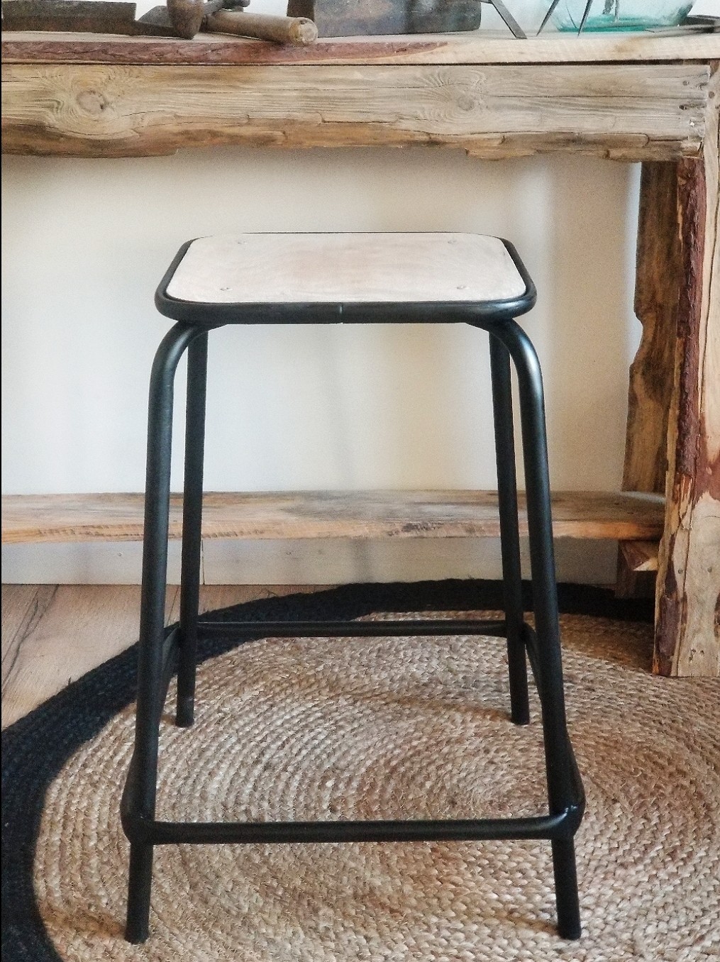 Après une remise en forme, ces jolis tabourets sont prêts pour une nouvelle vie. Un ponçage de l'assise et un vernissage, des pieds repeints en noir mat ont permis à ces tabourets de revivre après des années d'atelier