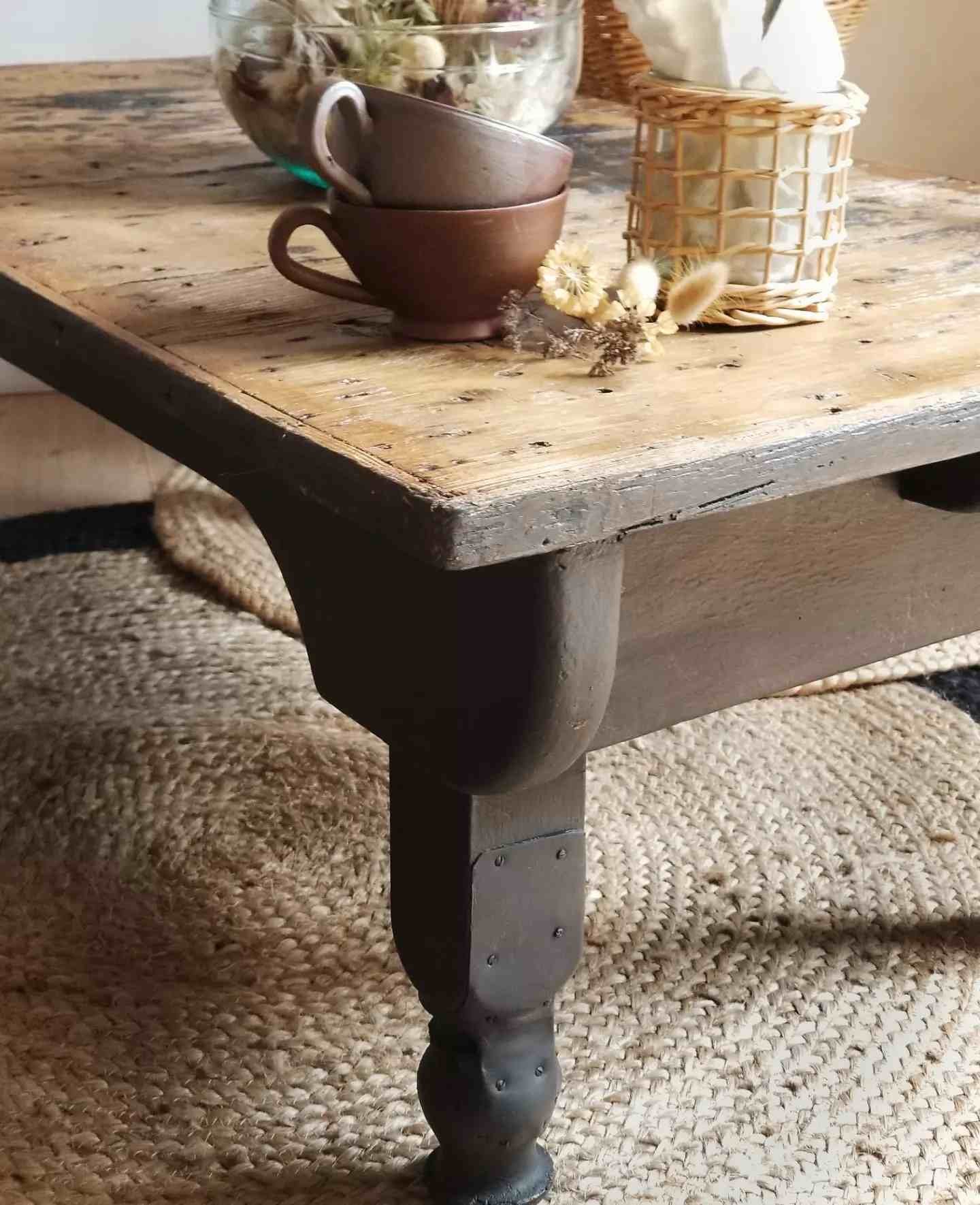 La patine du bois sur le plateau, ses cicatrices, ses réparations anciennes et ses petits défauts la rendent totalement unique et craquante ?