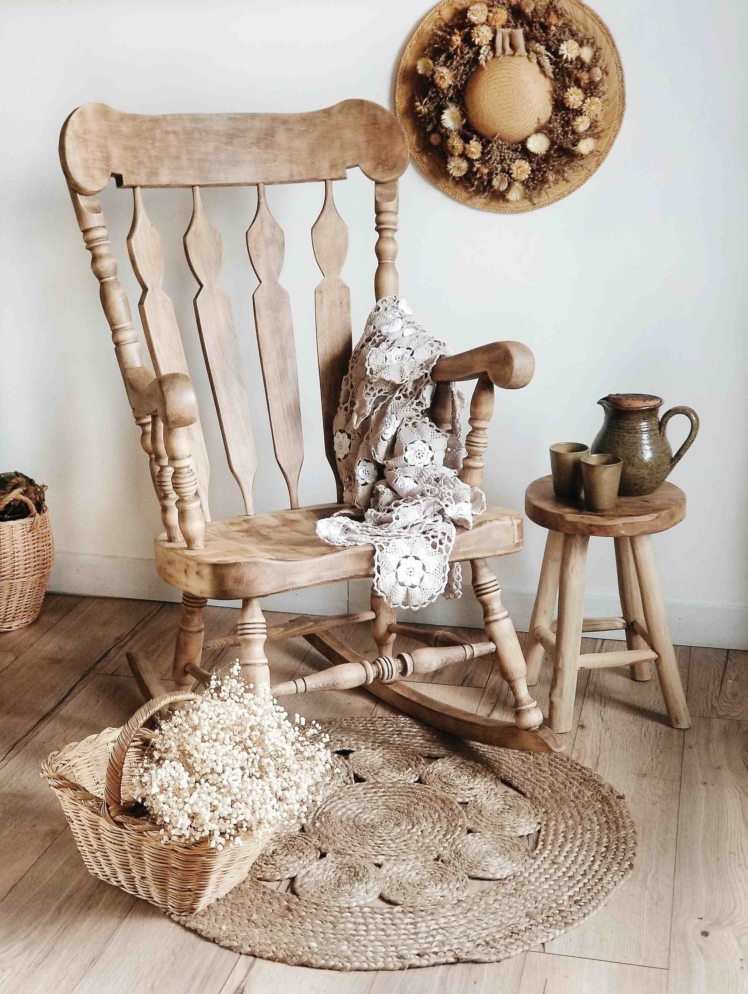 Grand rocking-chair en bois massif qui est une invitation à la détente...
