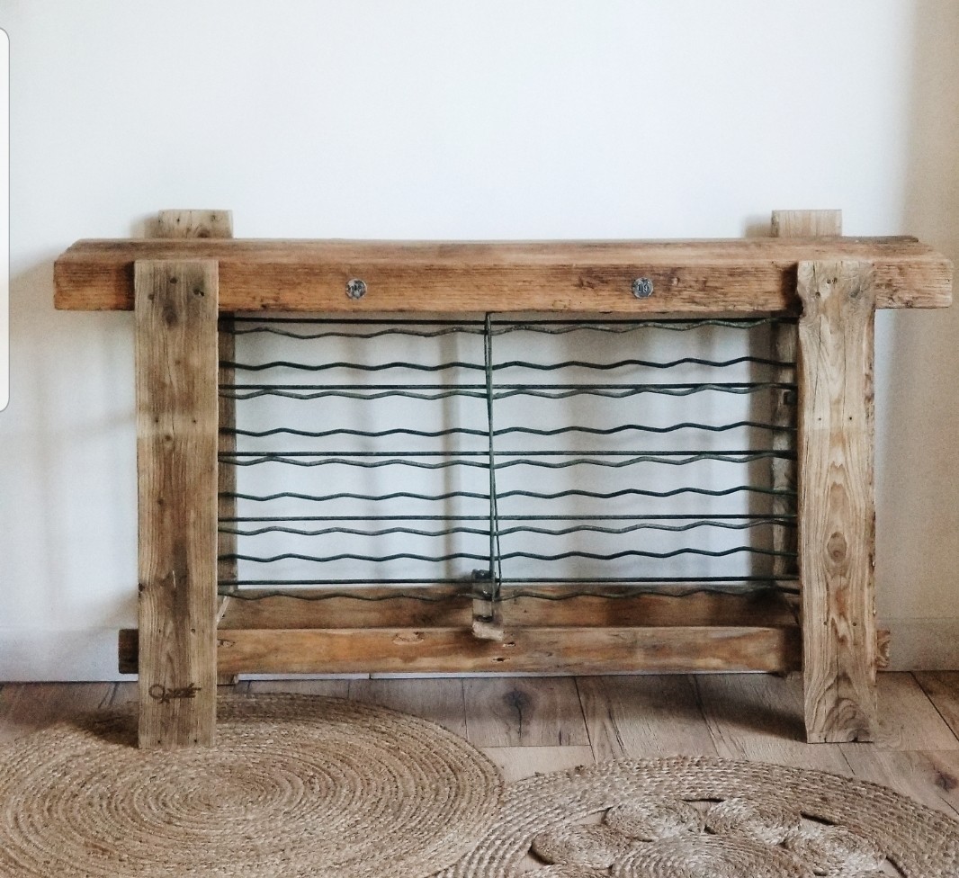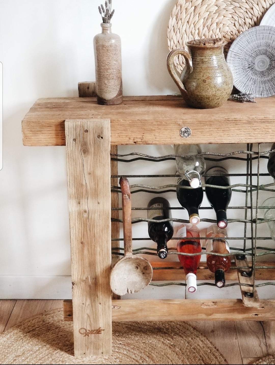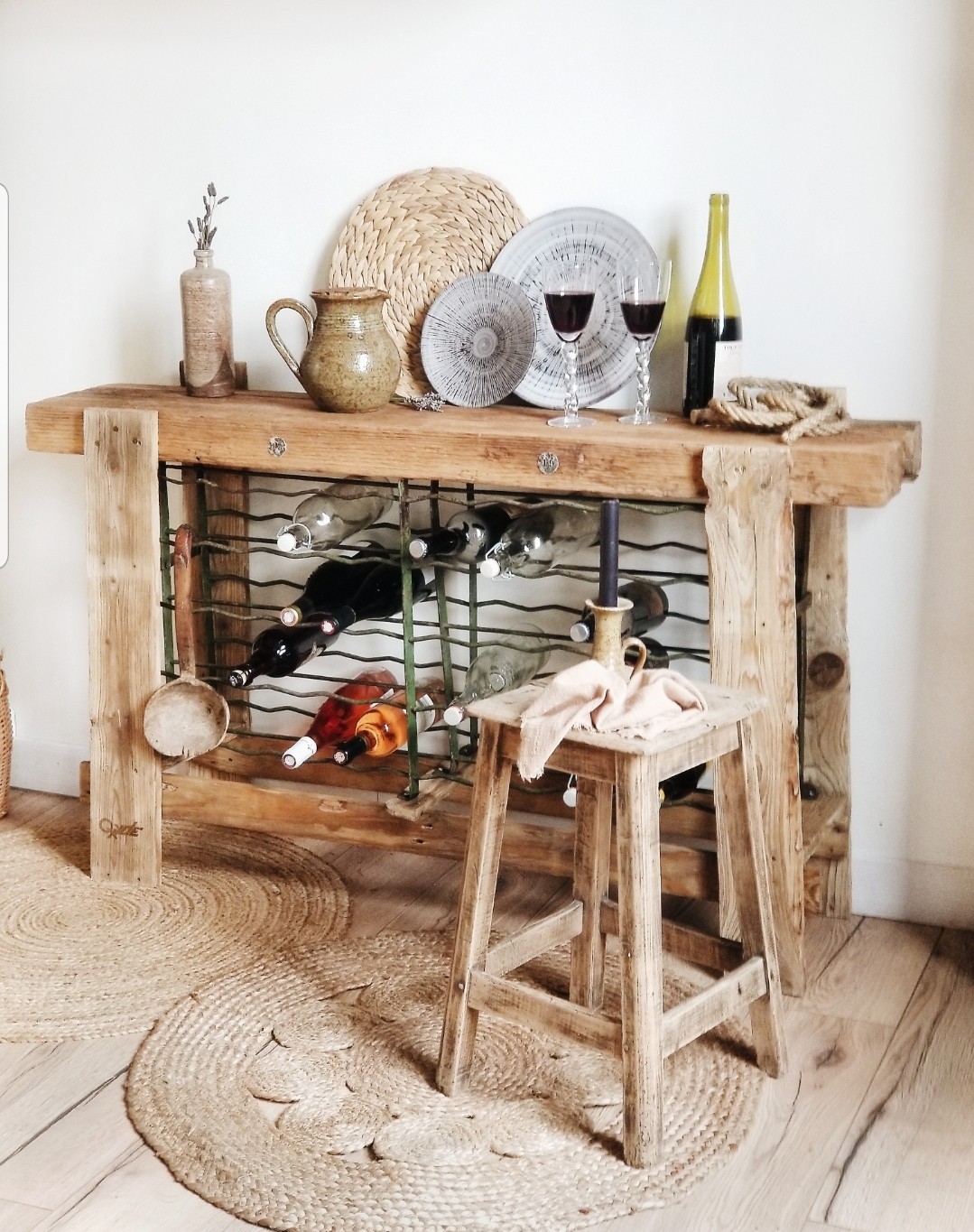 Du bois d'atelier solide et un ancien casier a bouteilles d'une jolie patine verte, a vous dy ajouter de la convivialité