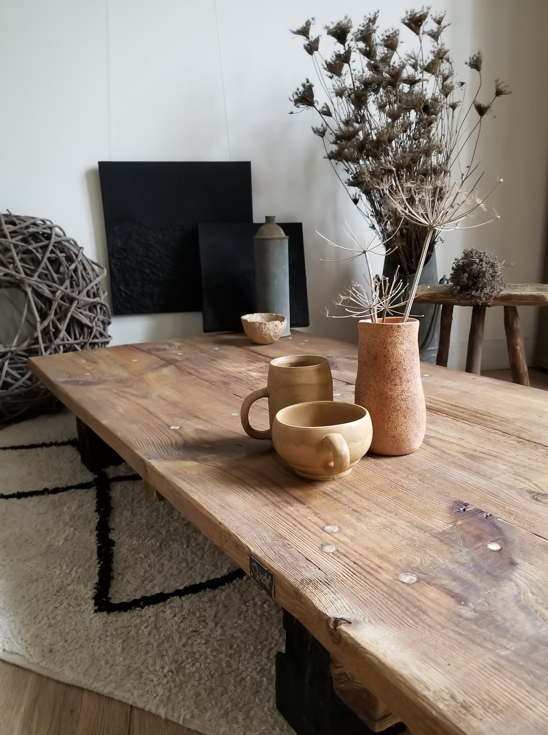 Authentique avec son bois brut et ses couleurs naturelles.