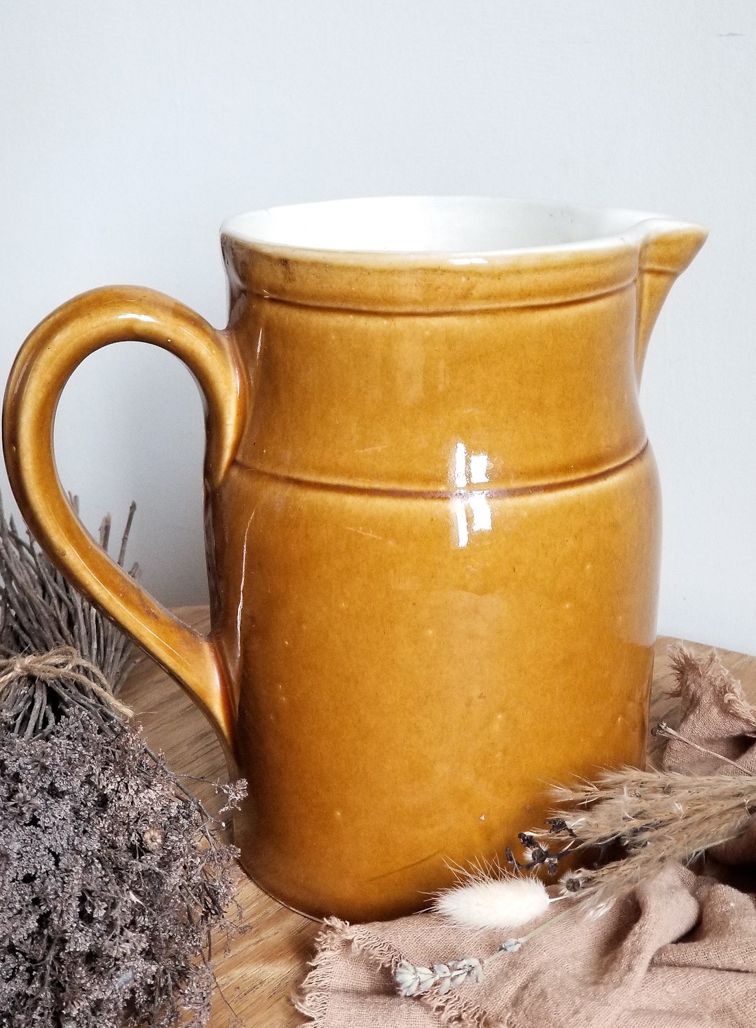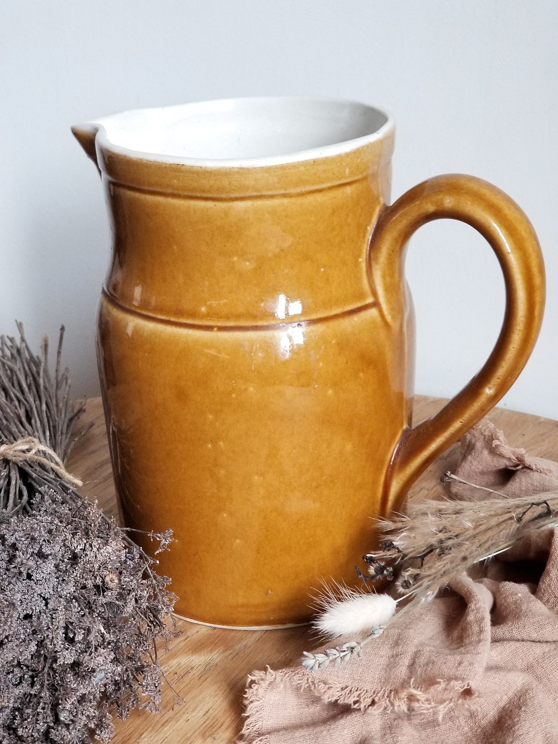 Très grand et lourd pichet vintage en céramique émaillée