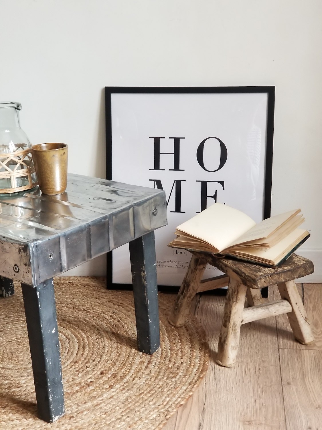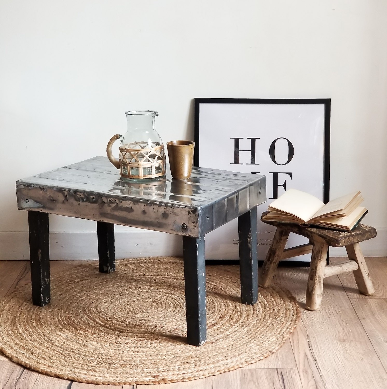 Petite table basse, bout de canapé, issue d'un ancien tiroir hollandais.