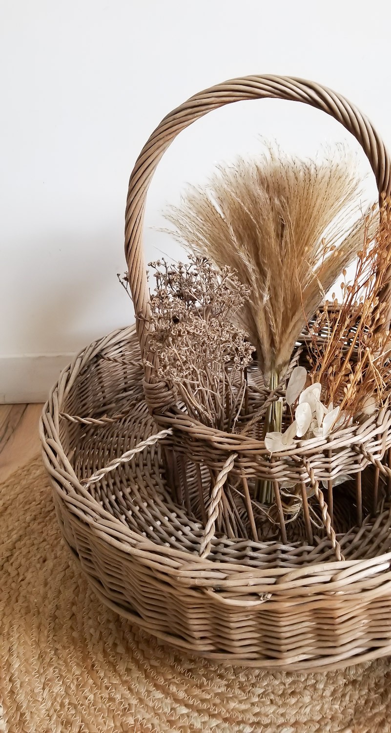 Très grand panier en osier vintage