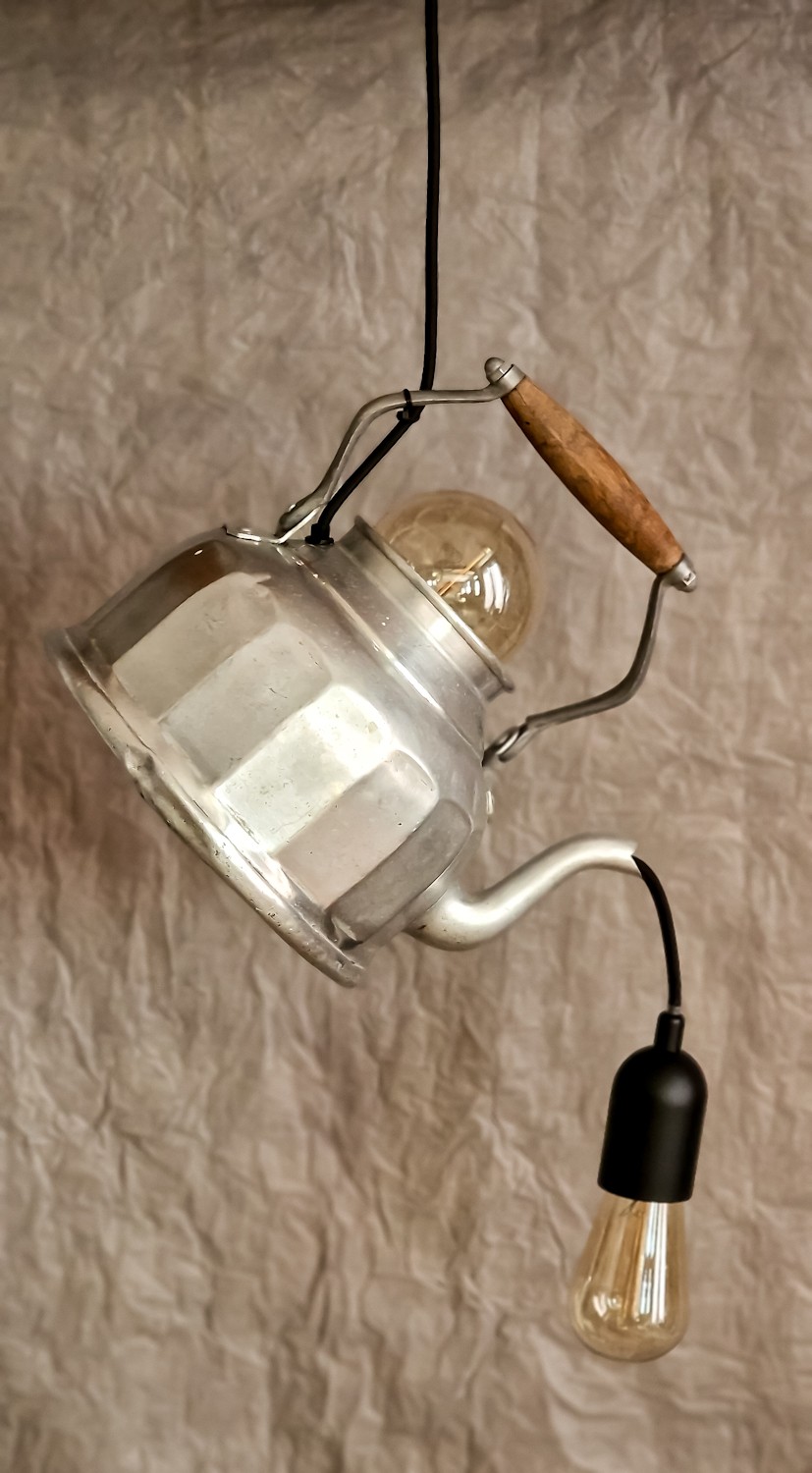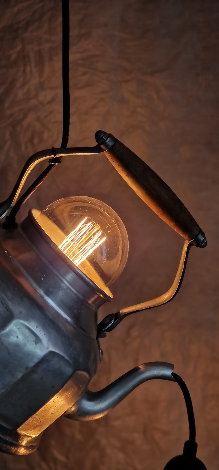 Retraite méritée pour cette bouilloire ayant rendu énormément service, transformée en suspension vintage pour l'admirer sans la fatiguer