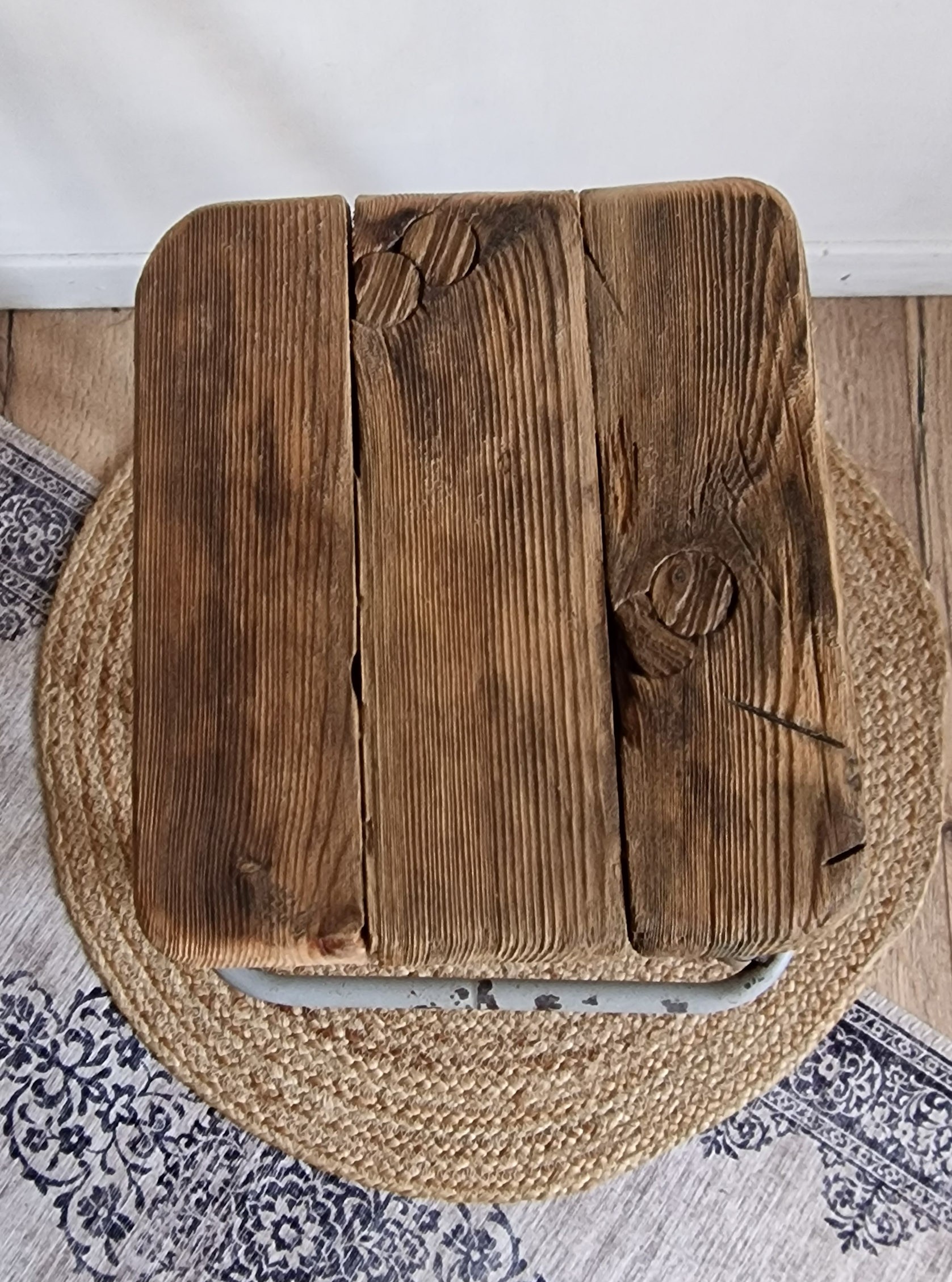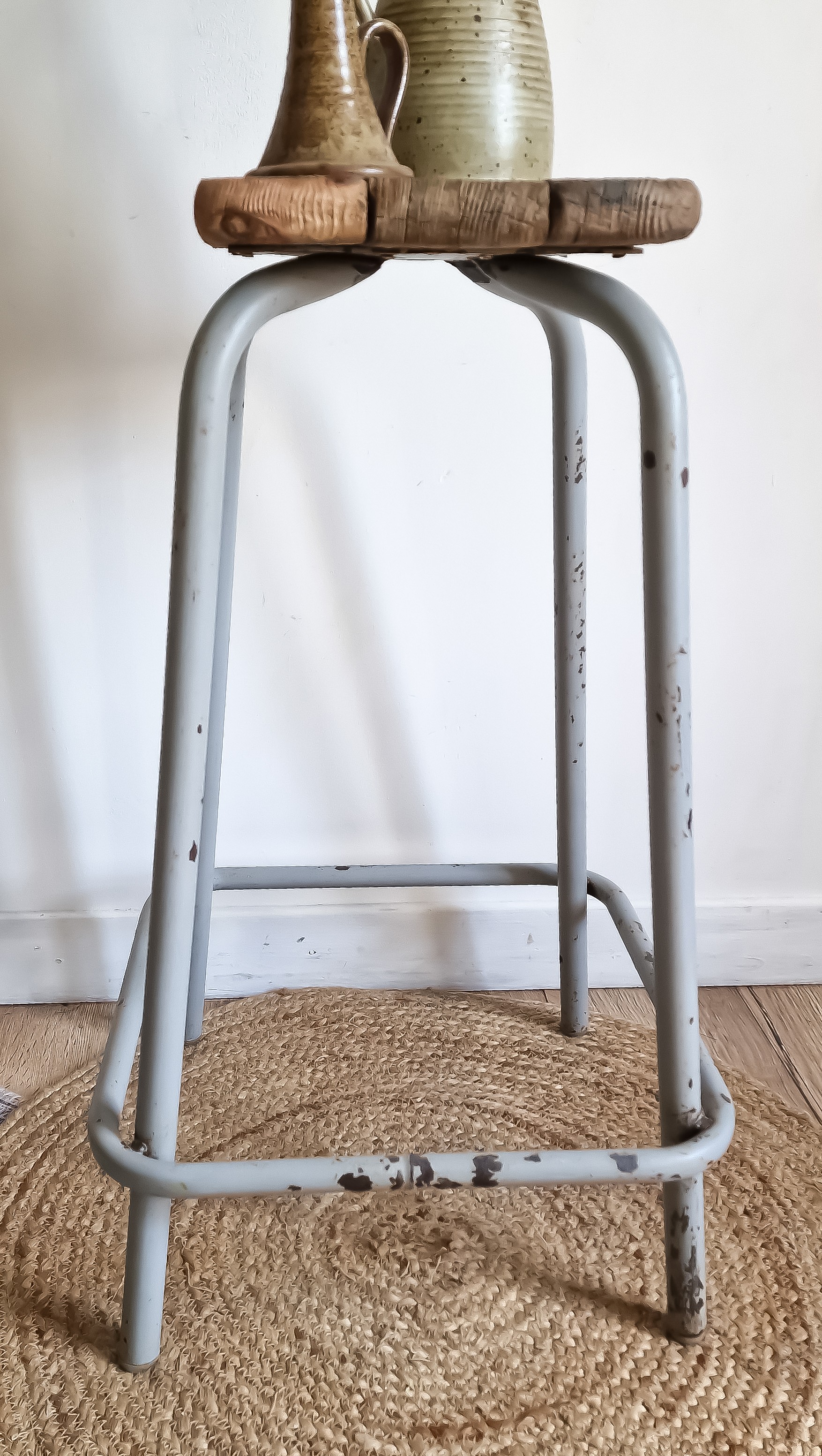 Le tabouret de sciences, vestige d'une époque révolue, a été sauvé des oubliettes du temps pour devenir une pièce unique.