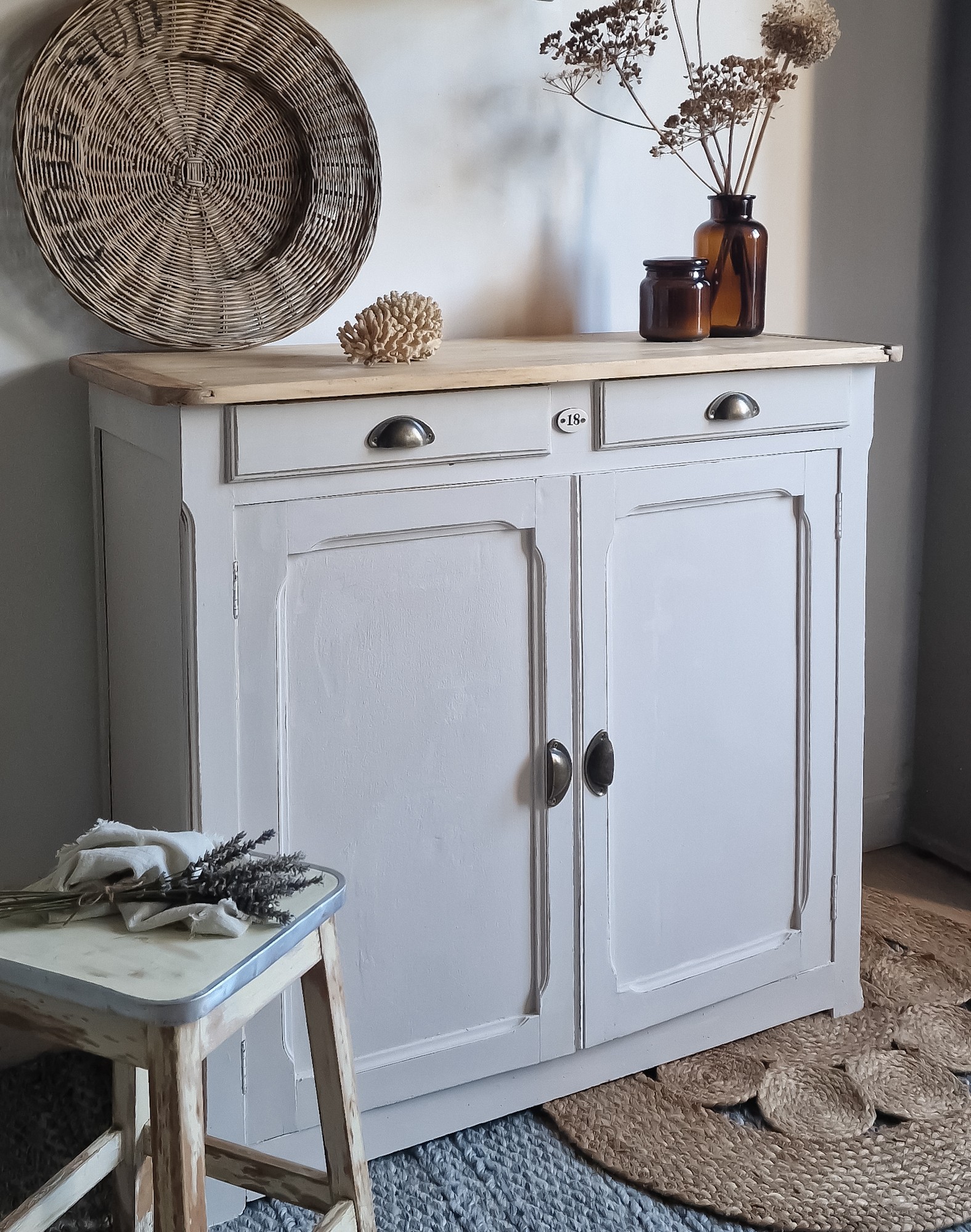 Grand buffet parisien relooké, réparé et empreint de charme. Baptisé Lucien en hommage à son ancien propriétaire sommelier de Montmartre, ce meuble unique conserve certains de ses petits défauts du passé qui racontent une histoire. Une pièce authentique, que nous avons sublimé.