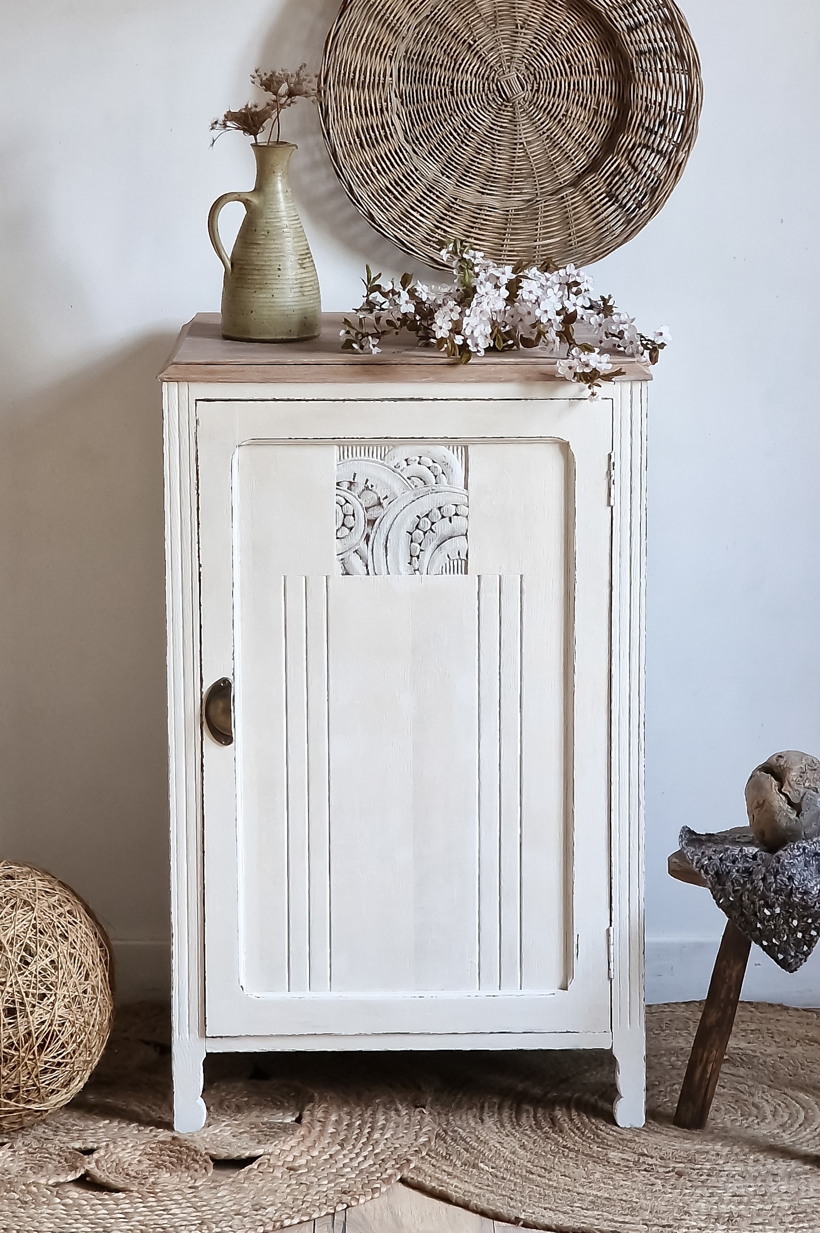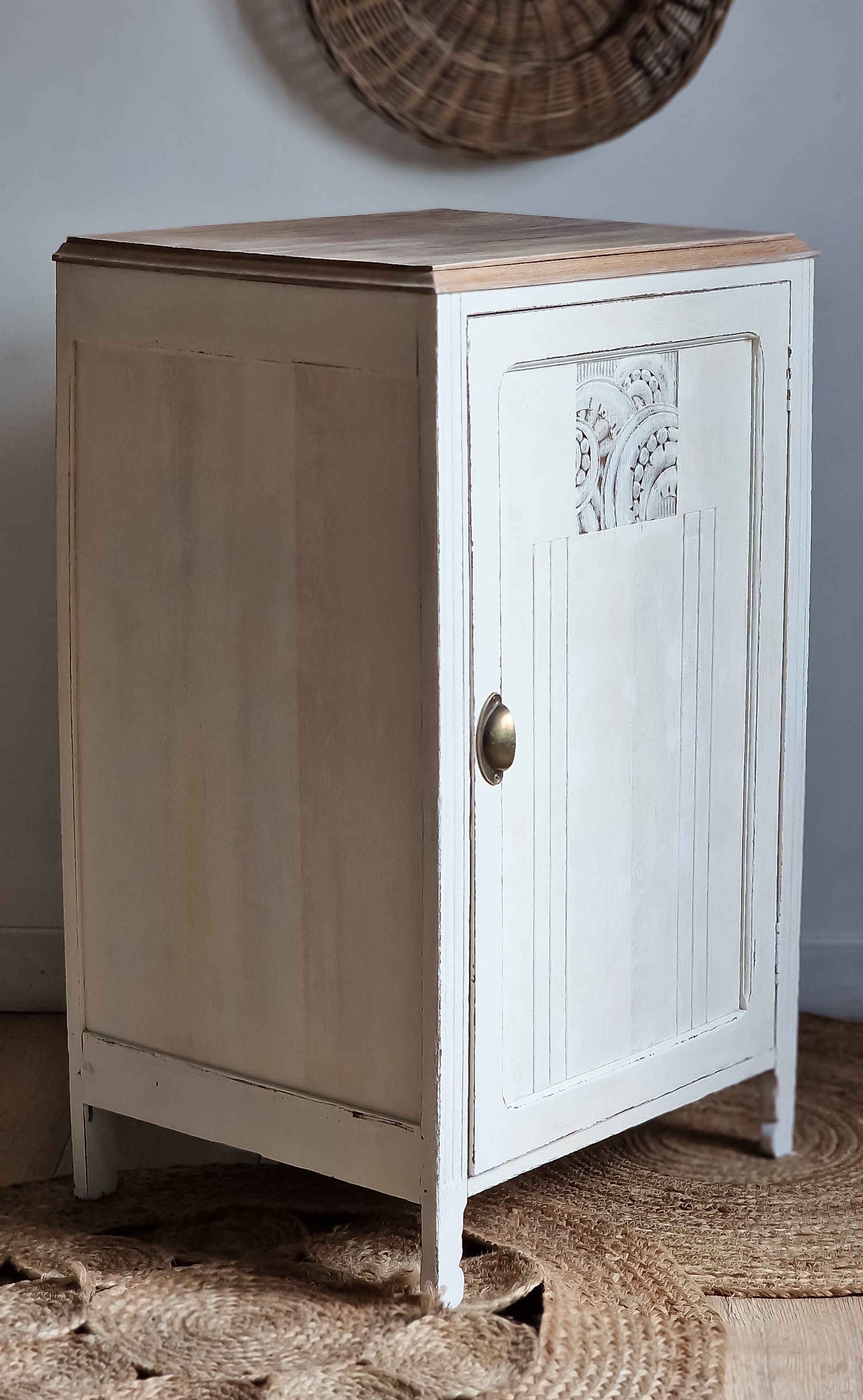 Conçu avec des lignes épurées et des motifs géométriques et fleuris,, ce meuble reflète l'innovation et le goût raffiné de son époque.