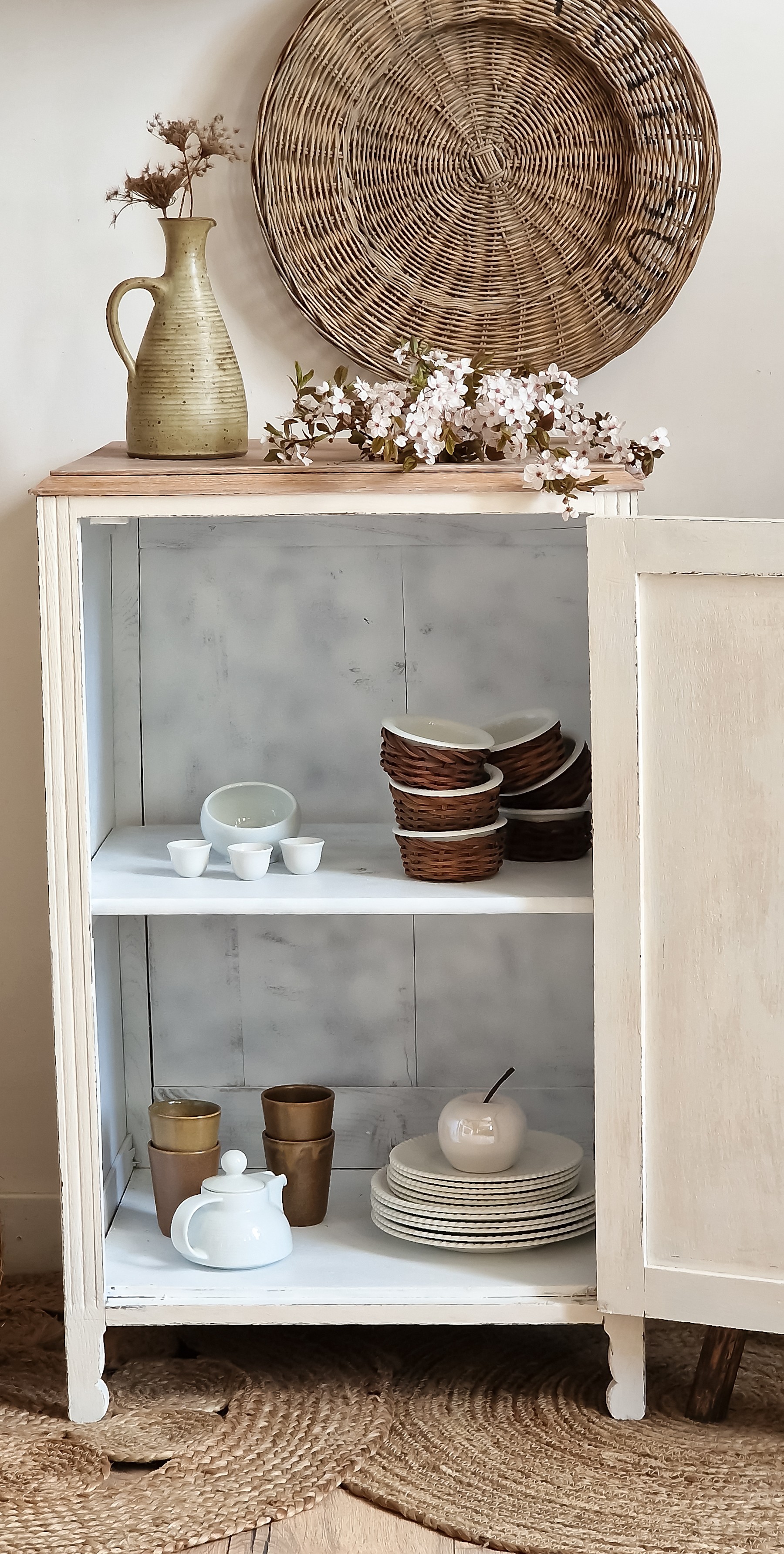 Sa patine clair, son intérieur blanc nous fait penser à la saison des cerises en fleurs...