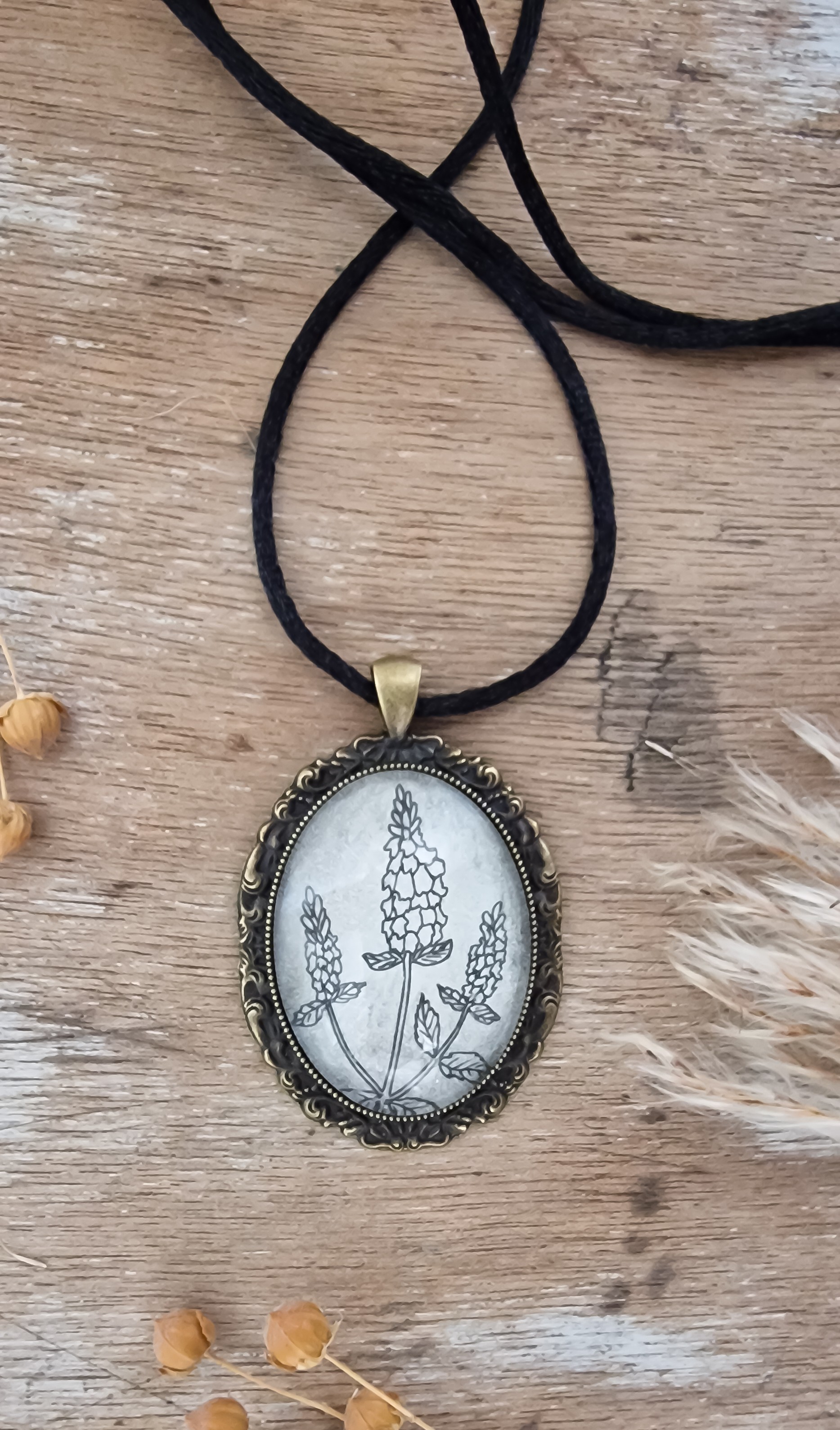 Collier médaillon « Botanique Vintage 4» – Fait main