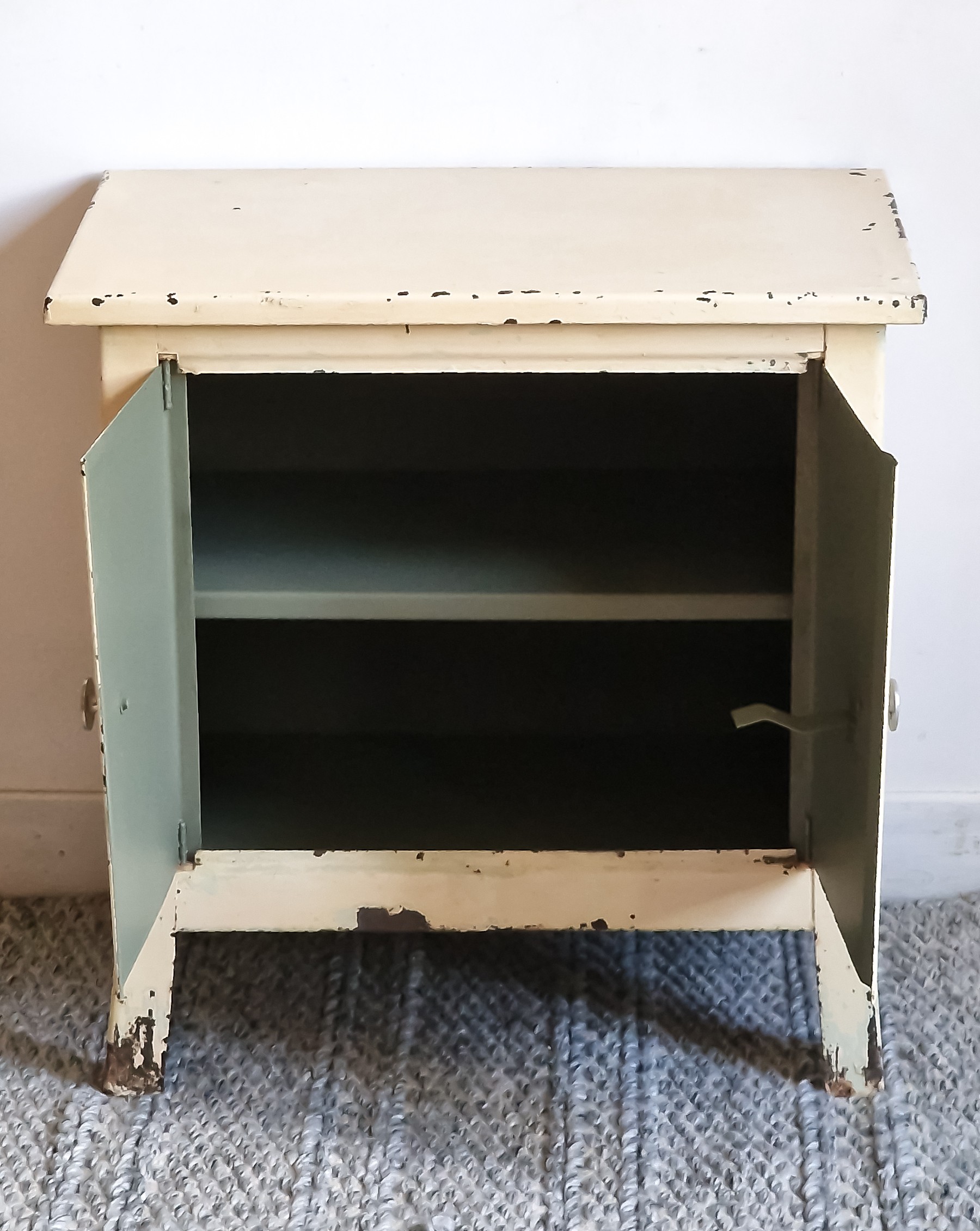 Matériaux : Métal ancien peint, intérieur vert sauge