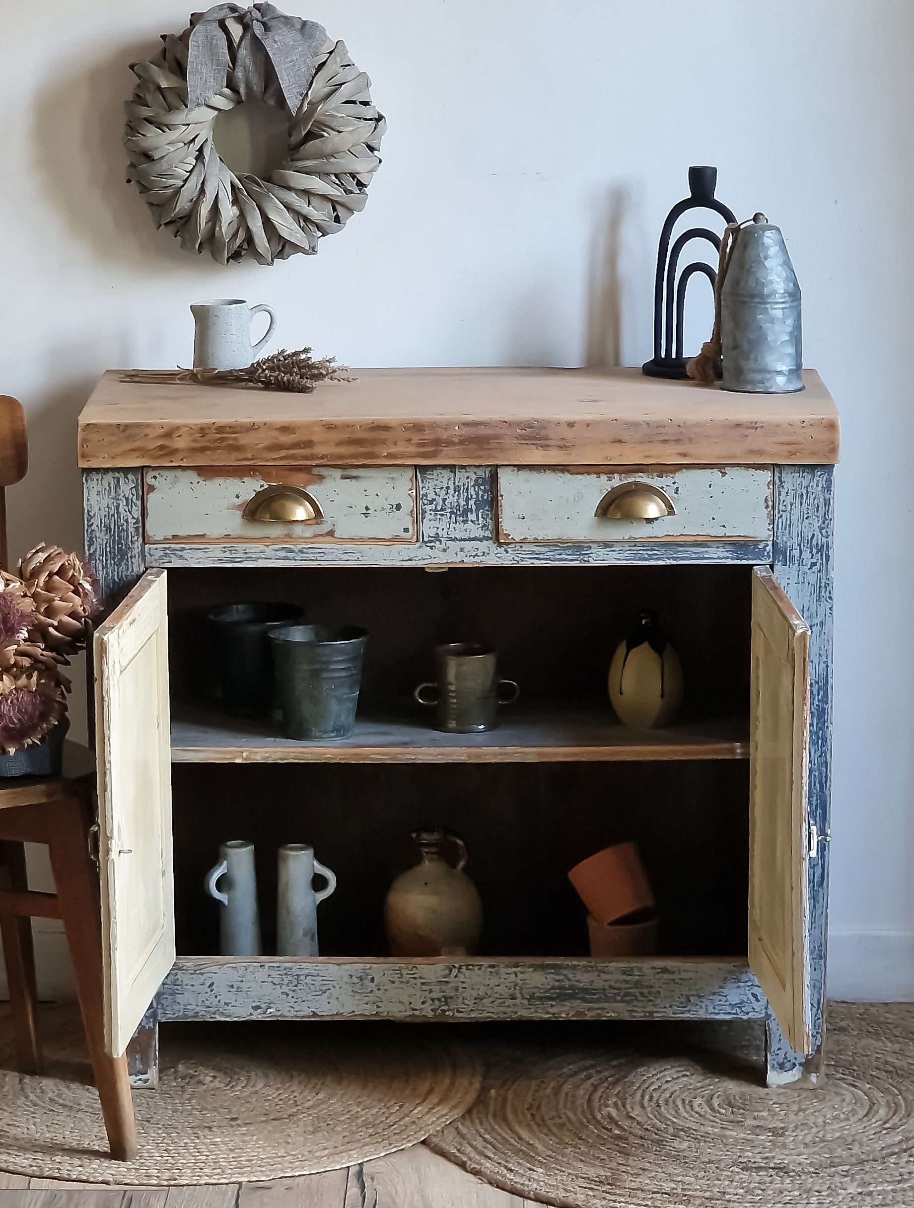 Du bois, du vécu, de l’âme.buffet parisien, meuble vintage, restauration artisanale, bois ancien, patine authentique, mobilier unique, meuble de caractère, style wabi-sabi, upcycling bois, meuble rénové, artisanat français